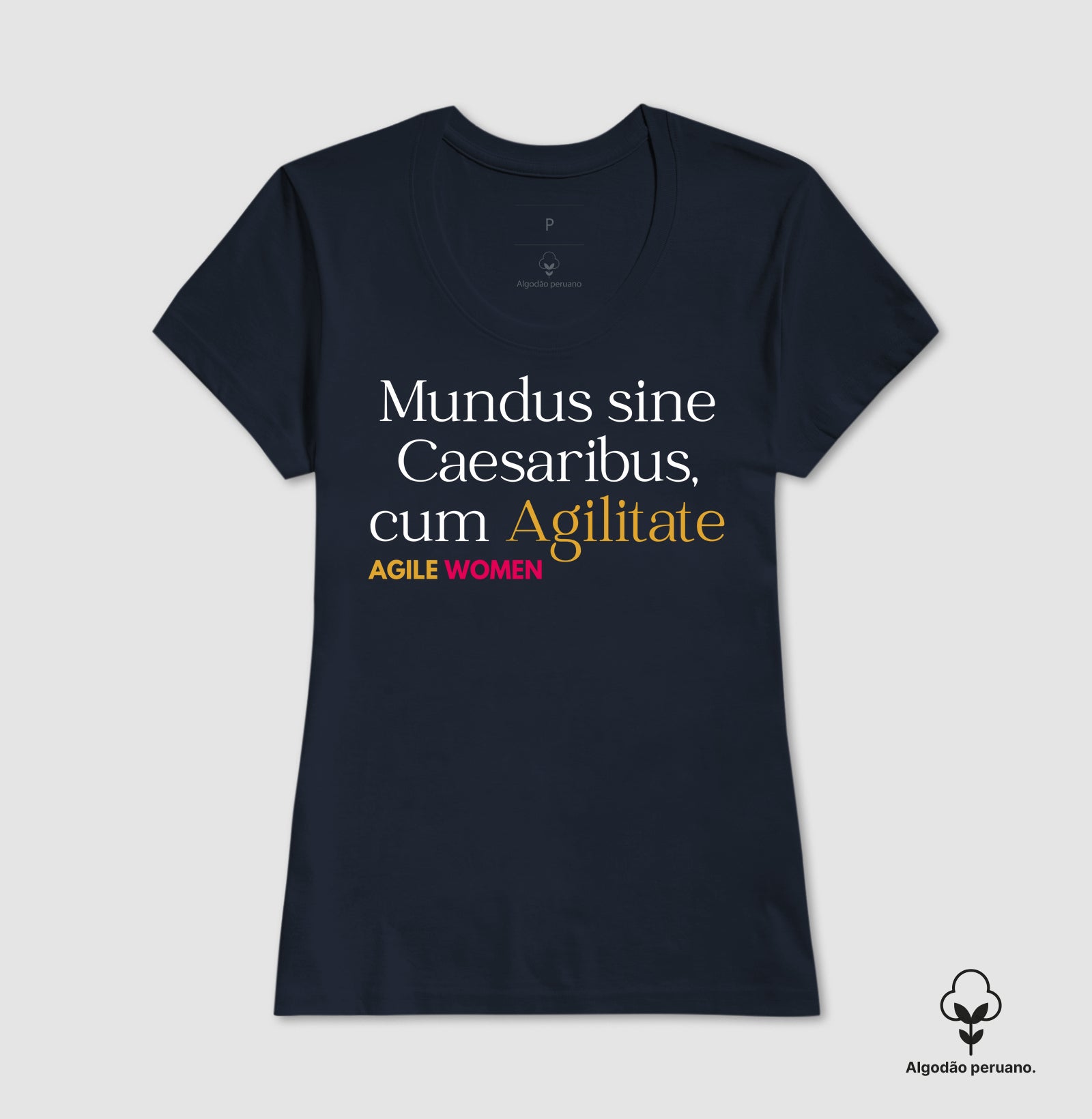 Para MULHERES QUE AGILIZAM RESULTADOS e prontas para mostrar ao mundo sua determinação, força e paixão pela AGILIDADE! Linha "AGILE WOMEN FASHION" feita especialmente para mulheres incríveis que lideram com empatia, visão e coragem qualquer empresa, projeto, negócio, equipe, família. Esta peça é um símbolo exclusivo de inovação, união e empoderamento. Criamos a frase “Mundus sine Caesaribus, cum Agilitate” em homenagem à frase “Mundus sine Caesaribus” que em latim que significa “um mundo sem César” e foi usada pela CEO da Bluesky, Jay Graber, durante o #SXSW 2025 em Austin nos Estados Unidos para criticar Mark Zuckerberg, CEO do Facebook, que usou uma camisa com a frase "aut Zuck aut nihil" que significa "ou Zuck ou nada". A frase foi usada como uma crítica sutil a Zuckerberg, que trocou o imperador romano pelo CEO do Facebook. Se você é contra este status quo, vista a causa e junte-se a nós AGIME WOMEN! Agilidade em cada detalhe: com um tecido premium e acabamento impecável, ela foi feita para durar em cada sprint, reunião de planejamento e celebração de conquistas. Versátil e estilosa, ela se adapta perfeitamente ao seu ritmo ágil, garantindo conforto em todos os desafios. Design que InspirAção: com um design moderno e minimalista ela transmite leveza e determinação direta e objetiva, representando clareza e transparência fundamentais para a valorização e inclusão da MULHER PROTAGONISTA. É a camiseta ideal para mulheres que inspiram mudança e criam o futuro com agilidade e autenticidade. Qualidade Premium: você merece tecidos à altura do ritmo das suas conquistas. Use-a no trabalho, em conferências ou em um dia casual para mostrar o orgulho de fazer parte de um movimento que valoriza mulheres. Conecte-se com outras líderes e entusiastas ágeis e mostre que você faz parte de algo maior. Exclusiva na ÁGIL FASHION STORE esta peça é um tributo às mulheres que constroem um mundo mais colaborativo e eficaz. Mostre seu orgulho ágil e empodere-se! #AgileWomen #LiderançaFeminina #AgilidadeComPropósito #AgilStore #UniversoAgil #Mundus #Agilitate #MundusAgilis